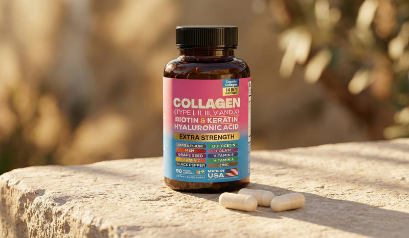 Cosmic Collagen Beauty Complex combines premium hydrolyzed collagen with essential nutrients to support firmer skin, healthy hair, and strong nails — all from within.